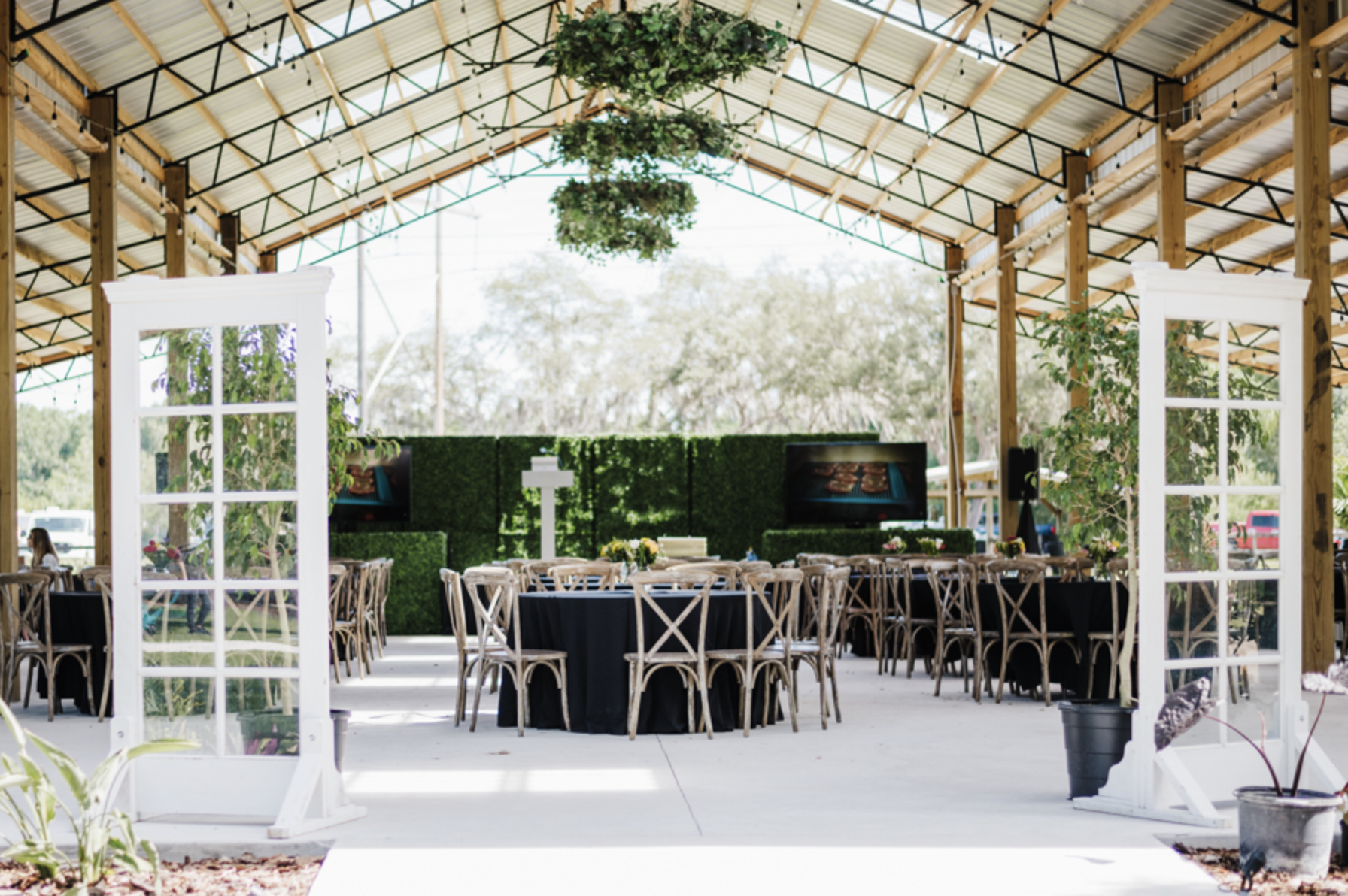 The venue for up to 4 hours, parking, in-house lawn games, speakers, microphone, tables, chairs, kid’s goodie bag, nonalcoholic beverages, and a buffet-style meal — your choice of two mains, three housemade sides and sauces, pickles, Faedo Family Bakery Cuban rolls, water, iced tea, and lemonade!